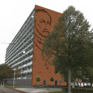 Bewoners van de flat aan de Lassuslaan kiezen voor afbeelding van componist Lassus op de gevel.