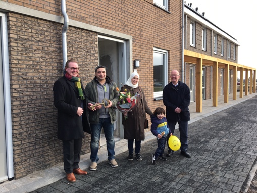Vandaag worden de eerste 10 woningen opgeleverd. Henk Loeters, voorzitter van de Centrale Huurdersraad overhandigde samen met Sjoerd Quint, directeur Openbaar Belang, de eerste sleutel.