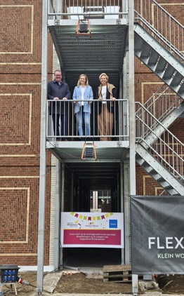 Alle modules zijn geplaatst en vandaag heeft wethouder Dorrit de Jong symbolisch de deur van het woonblok geopend. “Flexwoningen dragen bij aan een (t)huis in Zwolle voor iedereen, ook voor de (internationale) studenten van Windesheim. Geweldig mooi dat we samen met Windesheim en woningcorporatie Openbaar Belang aan ruim 50 jongeren de zekerheid van een woning kunnen bieden tijdens hun start in onze stad. Zo kunnen ze hun studie of werk oppakken en genieten van al het moois dat Zwolle te bieden heeft.” zo vertelt de wethouder.