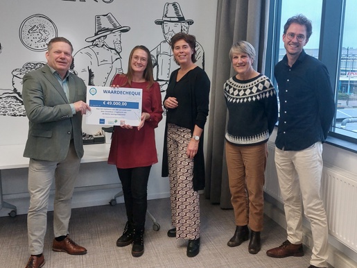 Arjan Spaans, wethouder Duurzame Stad, heeft een aanmoedigingscheque van € 49.000 subsidie uitgereikt aan de Zwolse woningbouwcorporaties.