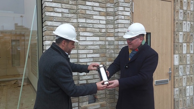 Recent is in de muur van gebouw A in Weezenlanden-Noord een tijdcapsule geplaatst. Sjoerd Quint, directeur Openbaar Belang, en Arno Kattenpoel Oude Heerink, directeur Nijhuis namen de honneurs waar. Klik hier om te zien hoe de tijdcapsule in de muur is geplaatst.