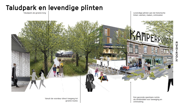 De Kamperpoort in Zwolle wordt de komende jaren een energieke wijk. Tenminste, als het aan bewoners, ondernemers en zes initiatiefnemers die nauw betrokken zijn bij het gebied, ligt. Het afgelopen jaar creëerden zij een integraal toekomstbeeld voor de wijk in 2030, waarin wonen, werken en leven met elkaar zijn verbonden. Het eindresultaat werd gisteren in het webinar Panorama Kamperpoort gedeeld met de bewoners en overige belangstellenden.